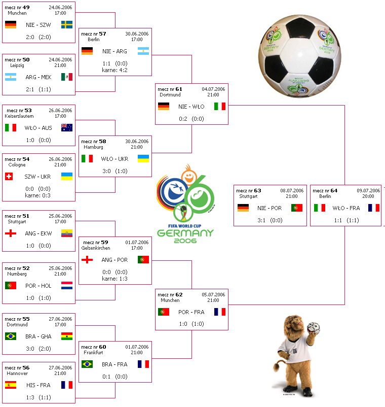 | 18.06.2006 | Munchen | 18:00 Brazylia - Australia | 2:0 (0:0) |